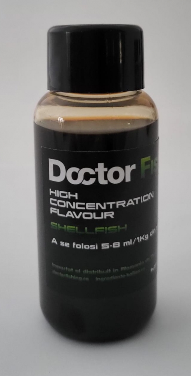 Shellfish High Concetration Flavour este o aroma foarte concentrata de calitate Premium, produsa in Marea Britanie. Accentul a fost pus pe calitatea solventilor si a tipurilor de esente aromatice folosite, care trebuie sa fie identic naturale, astfel incat amprenta acestora in boiliesuri sa fie unica si cu o mare putere de atractie.Toate aromele sunt termostabile, deci le puteti folosi cu cea mai mare incredere chiar si in cazul boiliesurilor care necesita un timp mai indelungat de fierbere. Ca si gama de arome oferite, s-a orientat exclusiv asupra acelor extracte aromatice care au oferit cele mai bune rezultate in pescuitul crapului, adaugand note particulare fiecareia dintre ele.